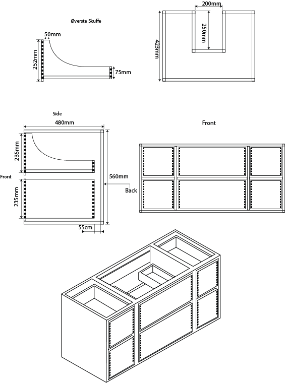 De fingertappede samlinger på skuffernes hjørner er ikke kun en visuel detalje – de er et tegn på solidt, holdbart håndværk. Disse samlinger gør skufferne mere robuste og modstandsdygtige mod dagligt slid, og understreger møblets eksklusive karakter.