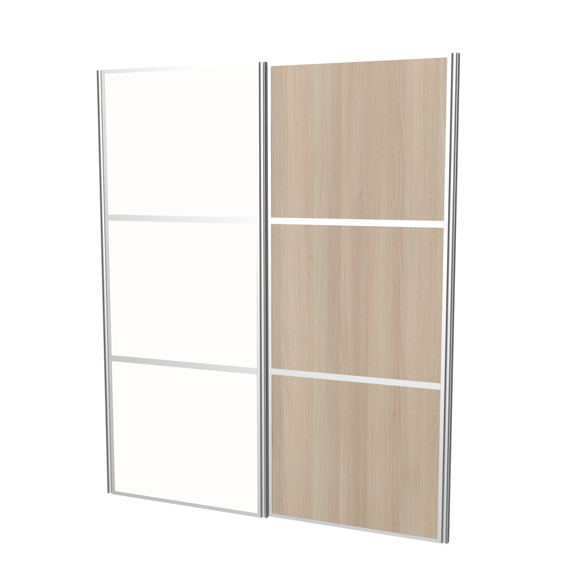 Med 2 skydelåger på mål med delt spejl 2002-2500 mm fra Pandora Kitchen får du en eksklusiv og pladsbesparende garderobeløsning, der kombinerer funktionalitet med et moderne design. Denne model er særlig velegnet til større skabe eller walk-in-løsninger, hvor både opbevaring og æstetik skal gå hånd i hånd.