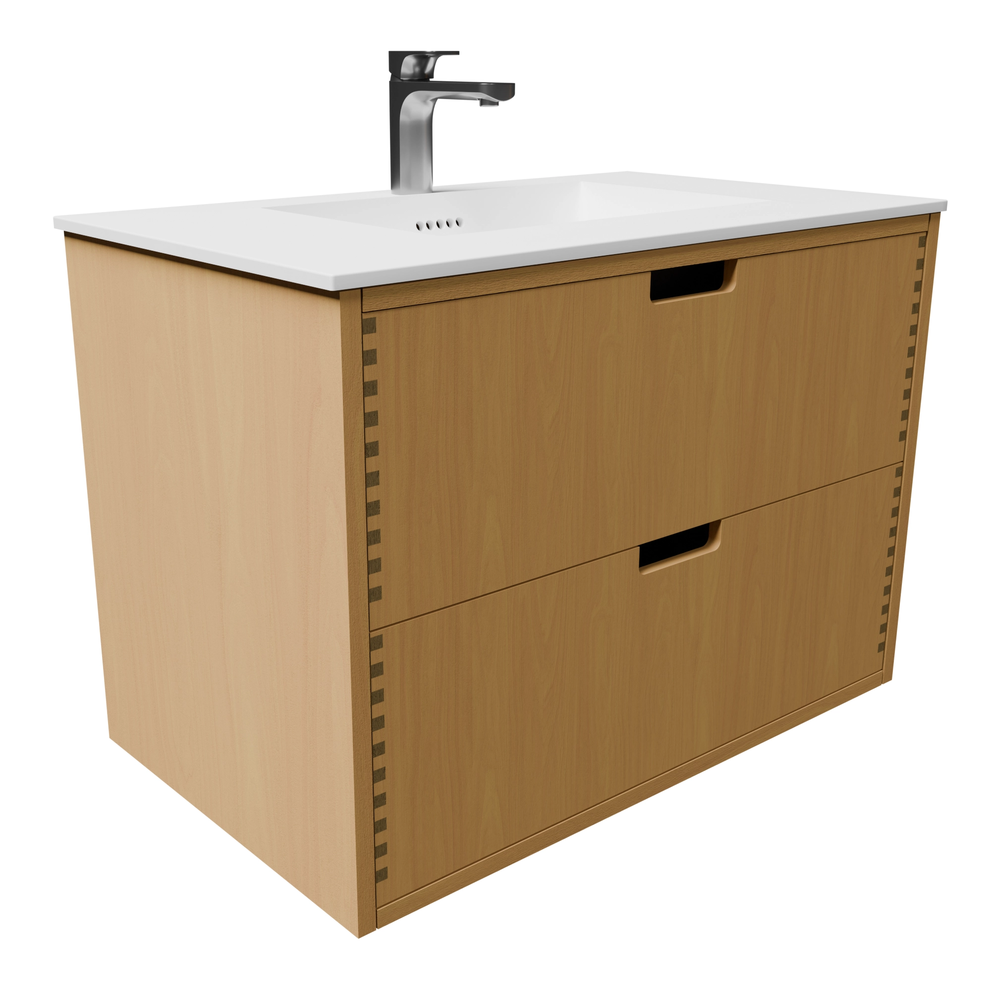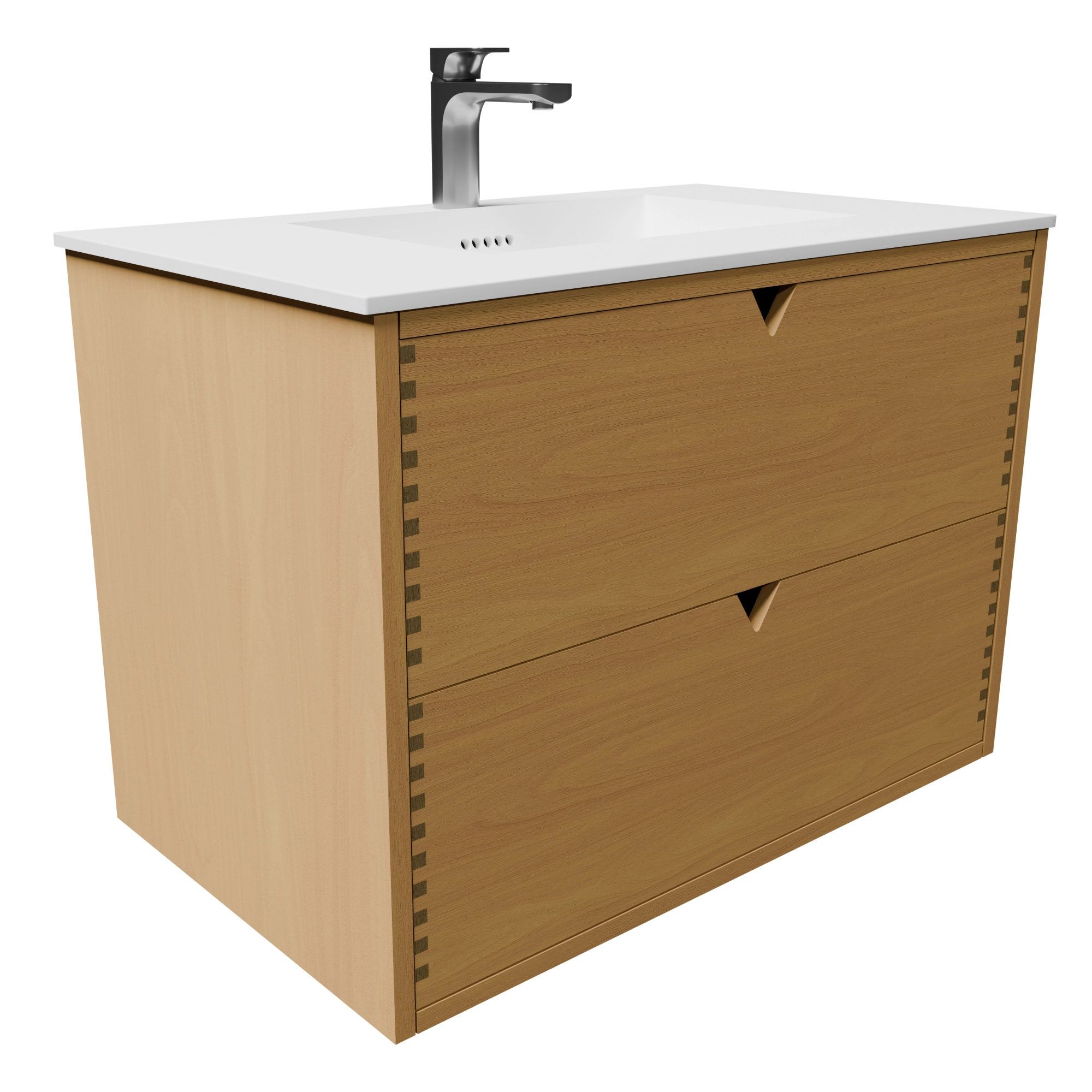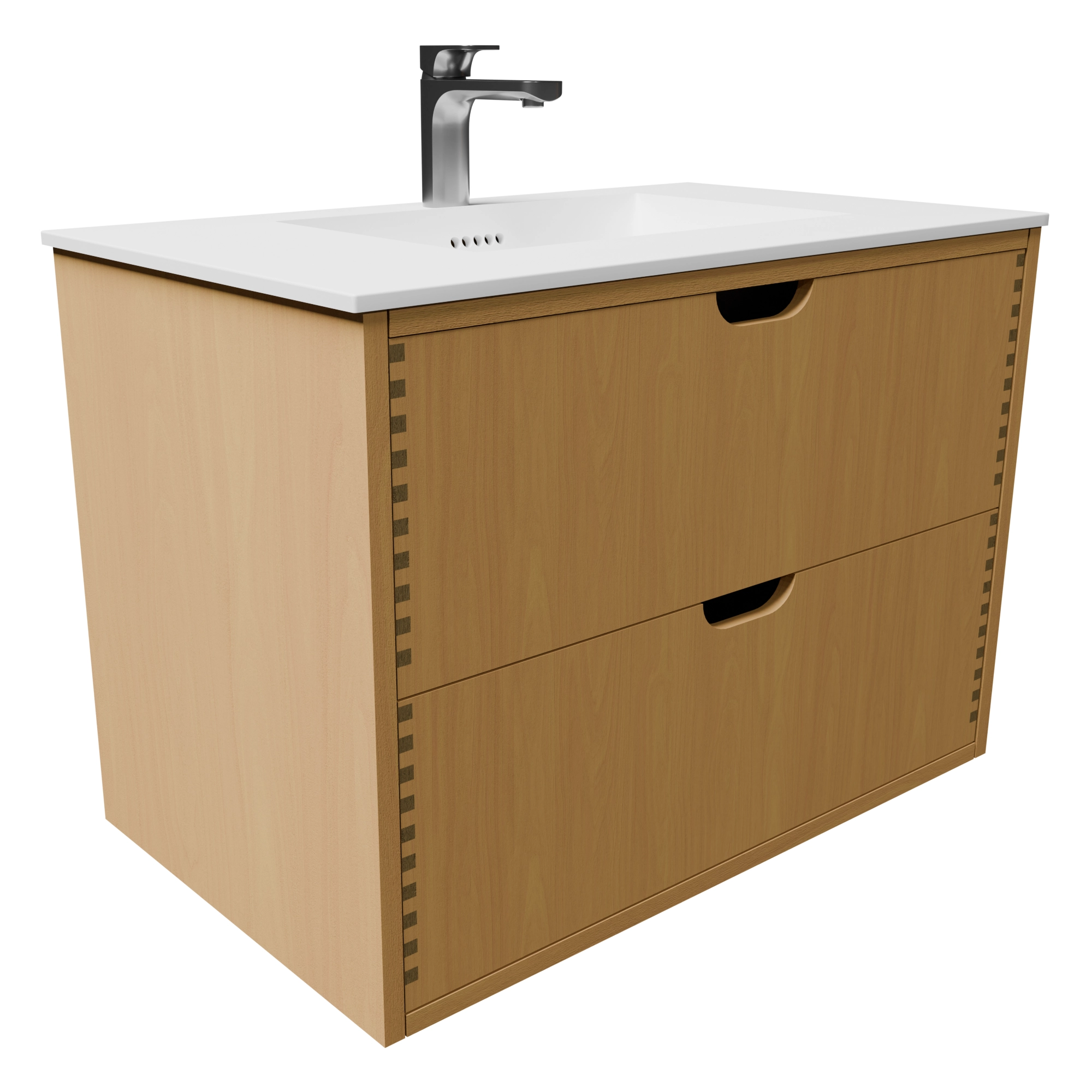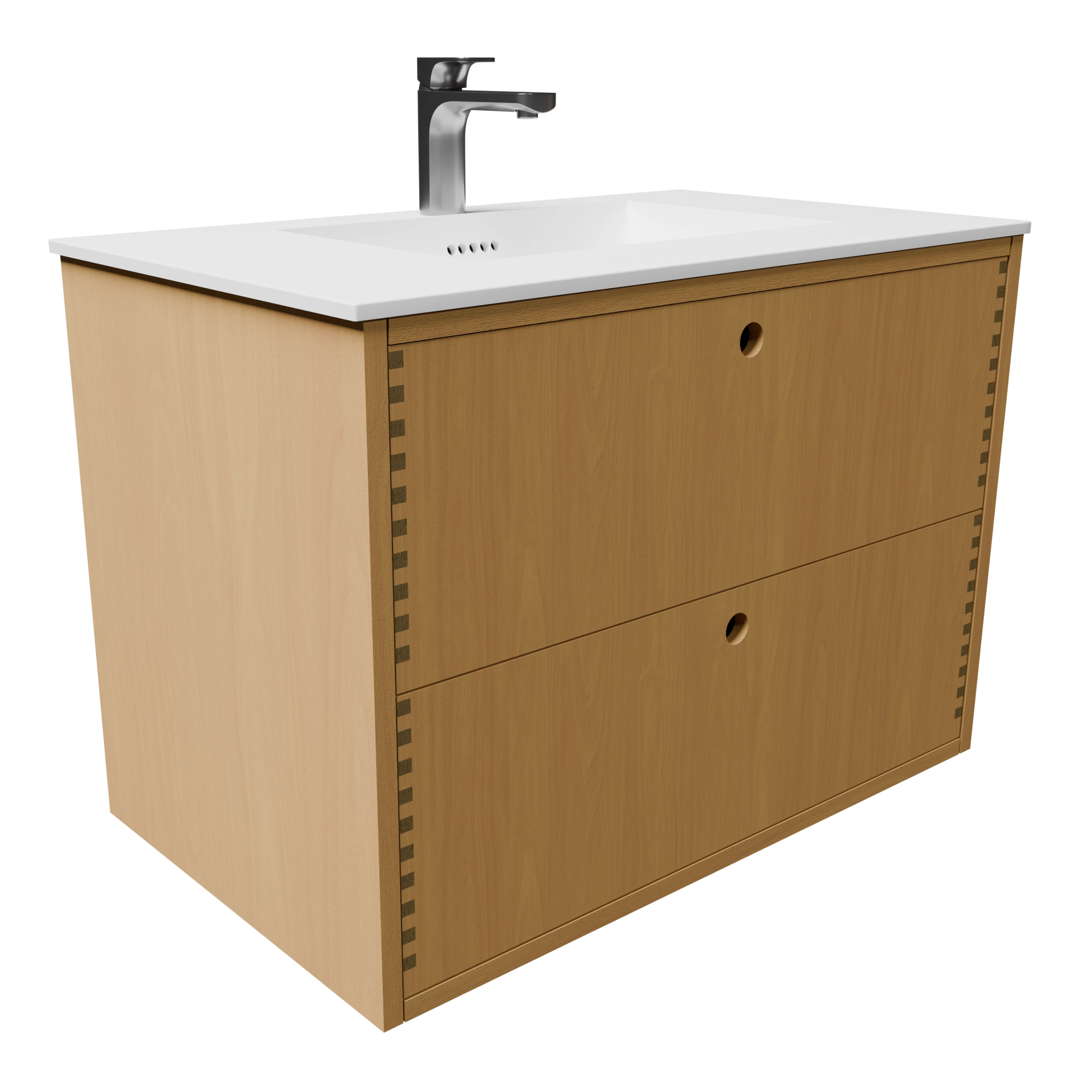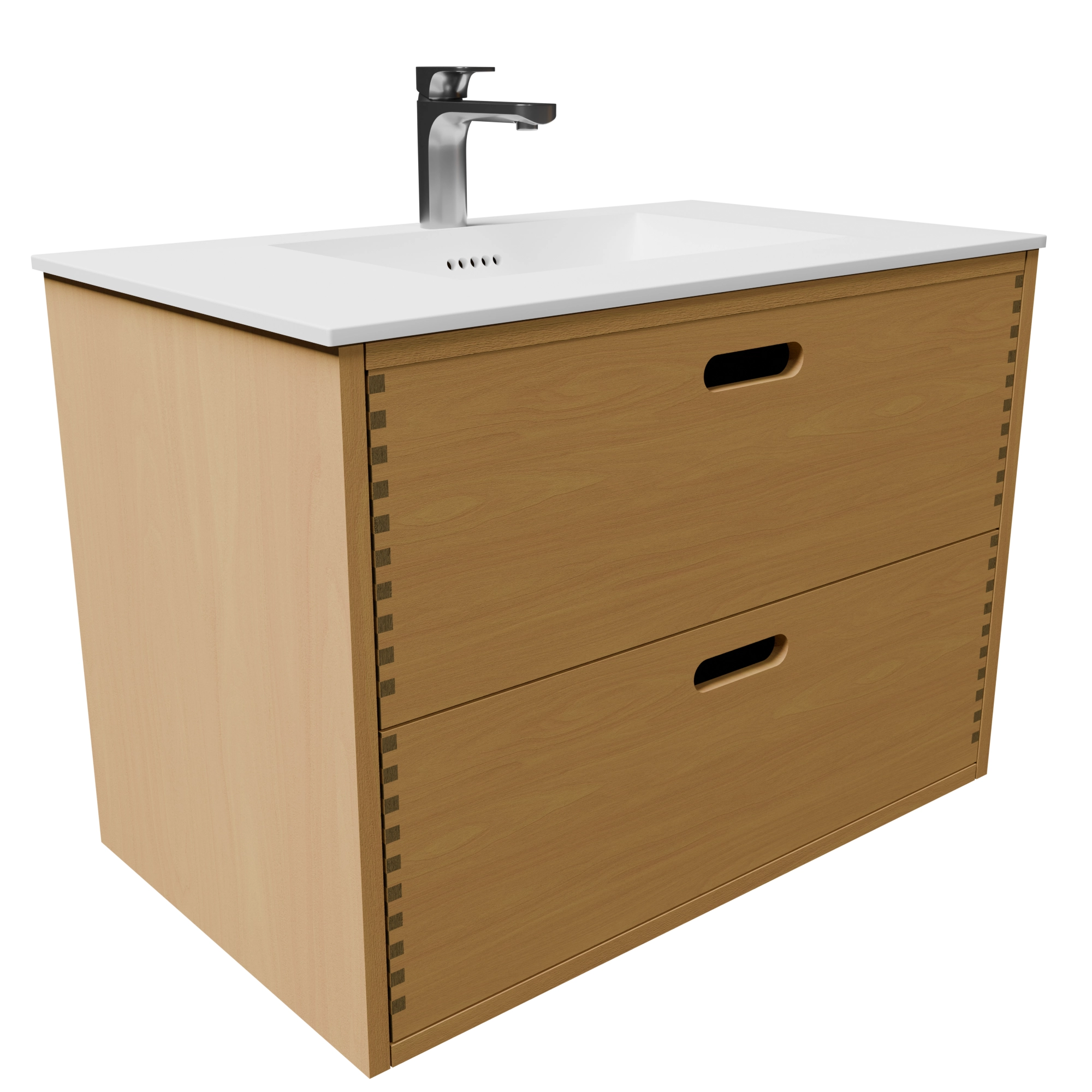 80 cm naturolieret fingertappet badmøbel med bordplade og greb