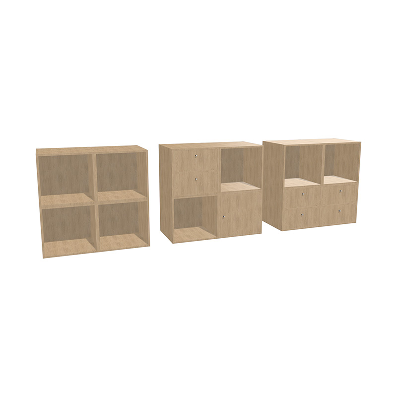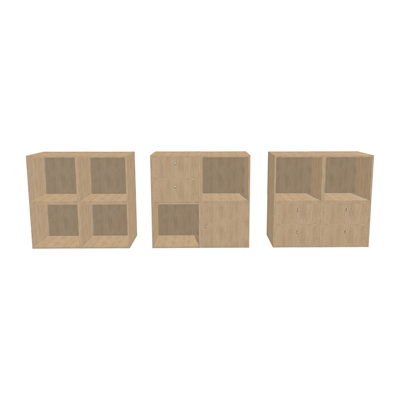 De åbne kuber indbyder til at udstille dine yndlingsbøger, små planter eller dekorative genstande, som giver hjemmet personlighed og varme. Samtidig sørger de lukkede kuber med låger for, at du nemt kan gemme hverdagens småting væk og opnå et roligt og ryddeligt udtryk. Skufferne er ideelle til mindre genstande, som du gerne vil have lige ved hånden, men som ikke behøver at stå fremme.